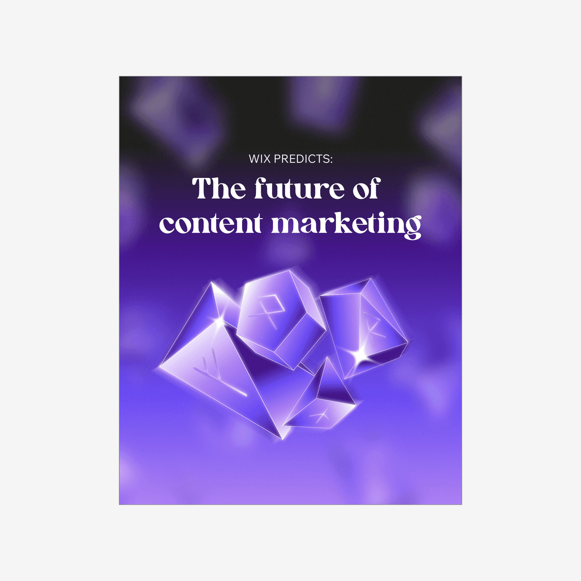 Wix Design Predictions is a brief for the end of the 2022 year of predictions for the following year, 2023, with some insights about design inspirations for that year. This brief was primarily led by our marketing manager. The following images you are seeing are two of a series of four created by me and were animated for social posts. The main request for the brief was to create outstanding imagery bold with the 'Prediction' theme in mind. It was a very fun brief collaborating with different designers from our team to create a language (that was created by myself) and needed to be passed on to the other designers and motion designers.